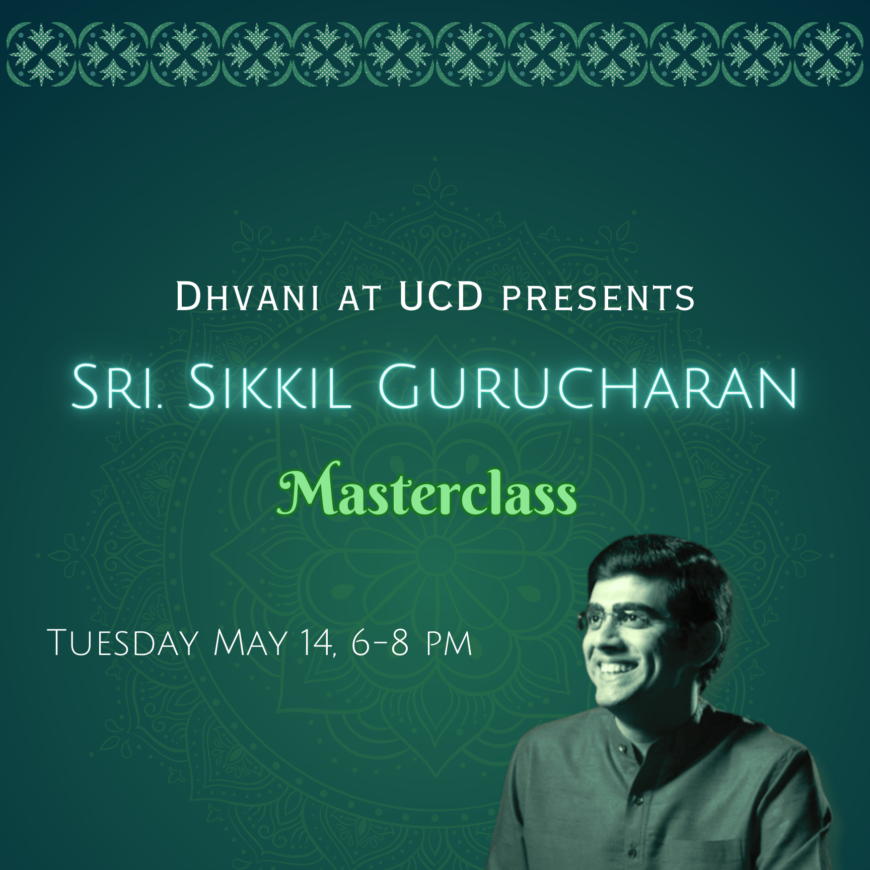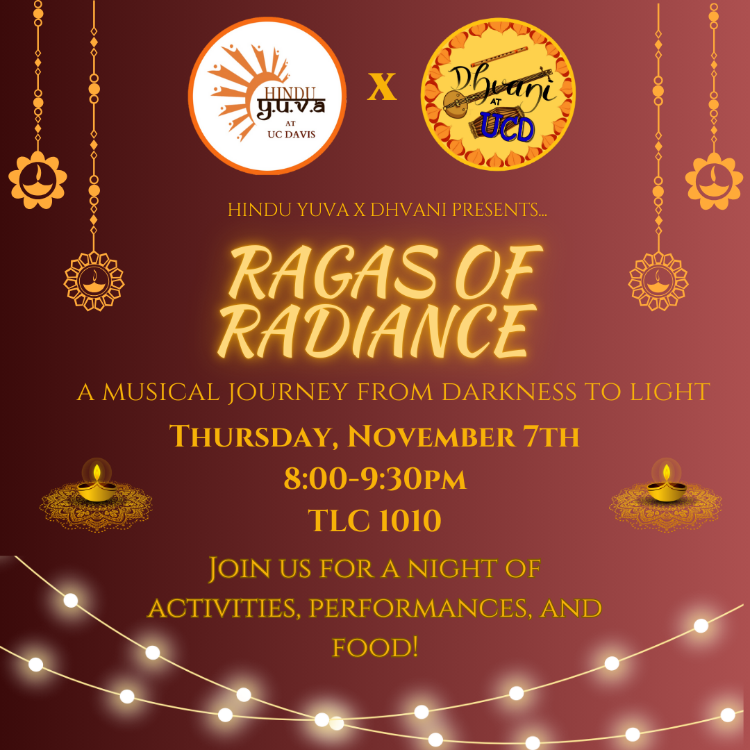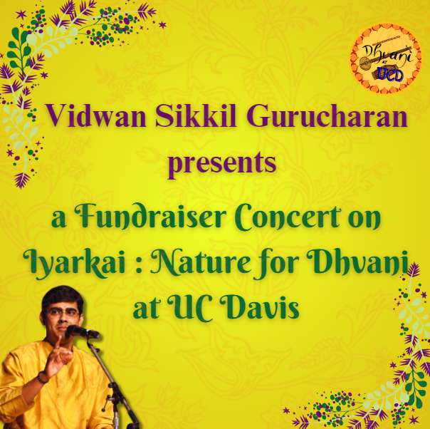 Dhvani at UC Davis proudly presents Vidwan Kalyanapuram S. Aravind in a Deepavali-themed concert on Saturday, October 26, from 4:00–7:00 PM, at Chinmaya Mission, Sacramento.
